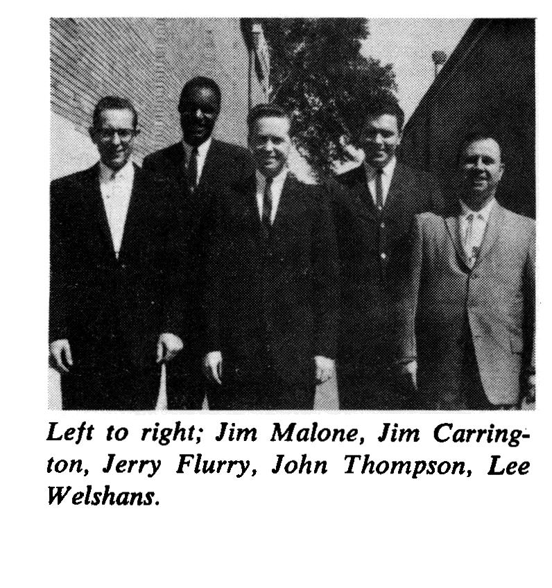 The following men were appointed as officers of Section "A" Spokesman Club: Jerry Flurry, President; Jim Malone, Vice-President; Jim Carrington, Secretary; Lee Welshams, Treasurer; and John Thompson, Sergeant-at-Arms.